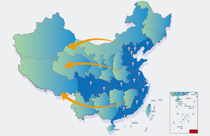 公司業(yè)務以華東,華南,華北等區(qū)域為中心,逐漸往中部及西部地區(qū)發(fā)展。